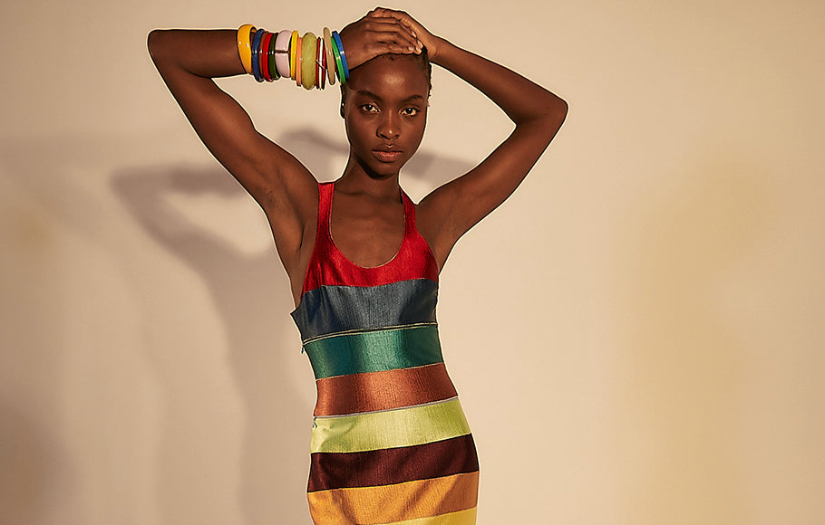Rosie Assoulin seeks to reinterpret the wondrous sights, sounds and feelings we encounter in life through designs that toe the line between romantically fantastical and reliably practical. Always present are whimsy, humor and Rosie’s signature rainbows of color.