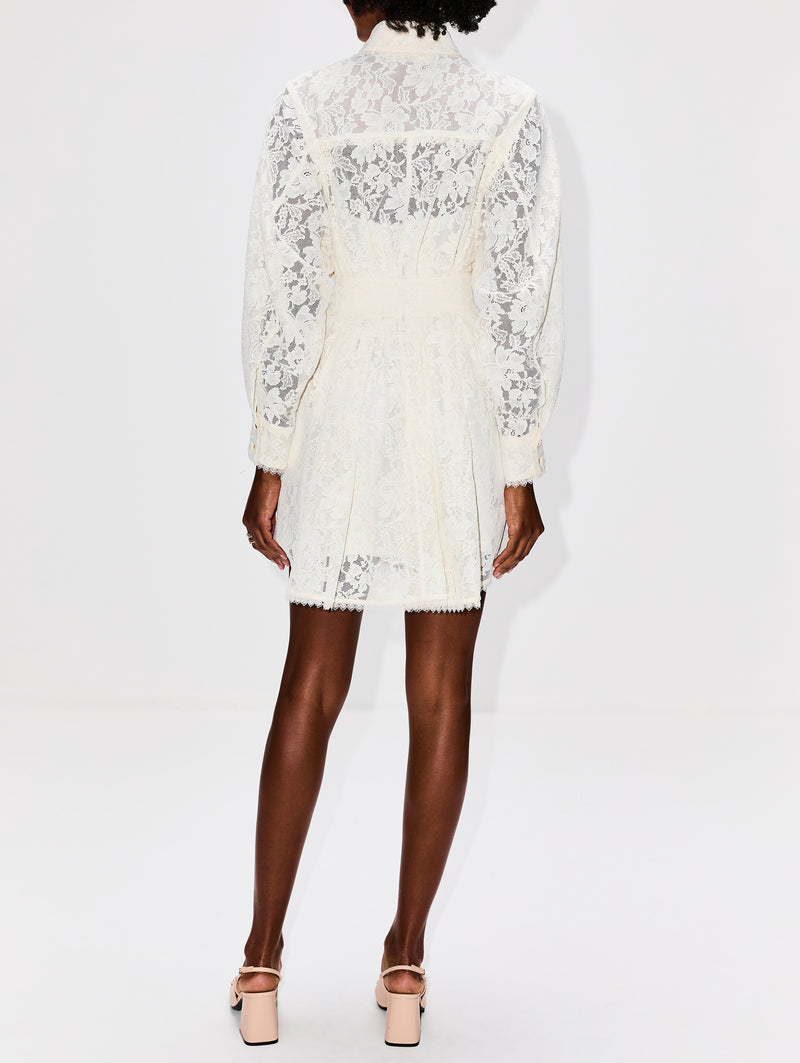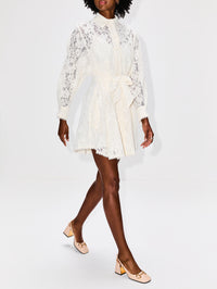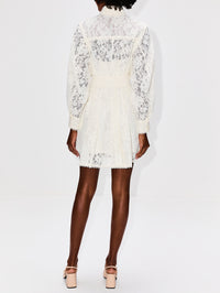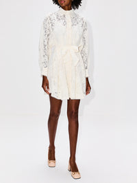 All the romance and femininity of the season is embodied in this luxurious shirtdress— blossoming with allover floral lace.