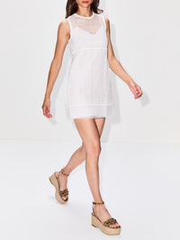This mini dress is crafted from macramé interspersed with the iconic Gucci script.
