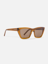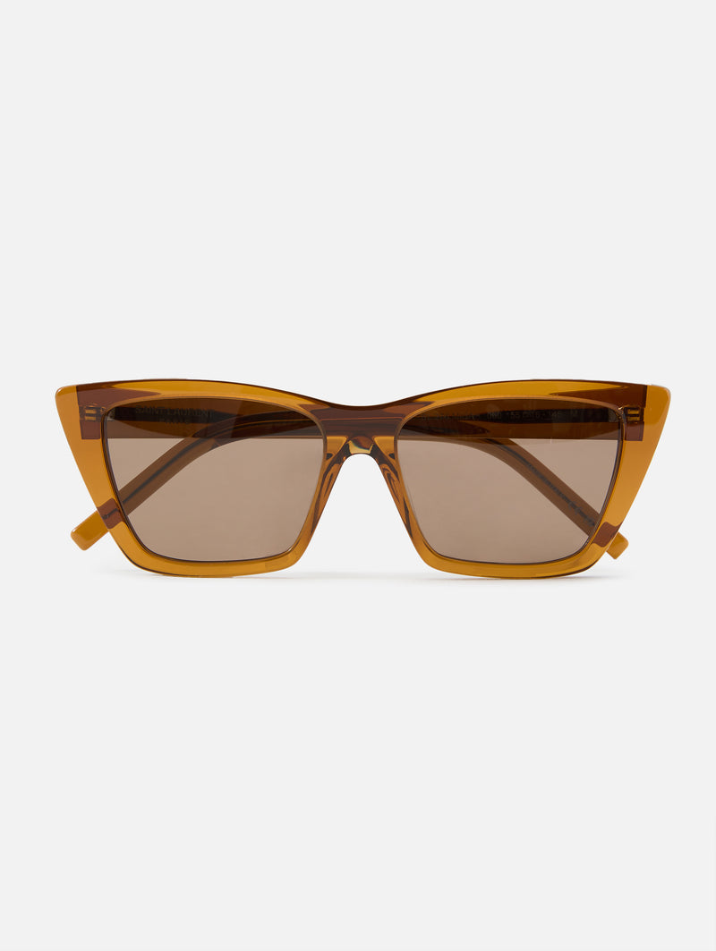 These cat-eye sunglasses from Saint Laurent Paris are a blend of vintage charm and modern luxury. With 100% UVA/UVB protection and engraved temples they offer both style and functionality for your sunlit days.