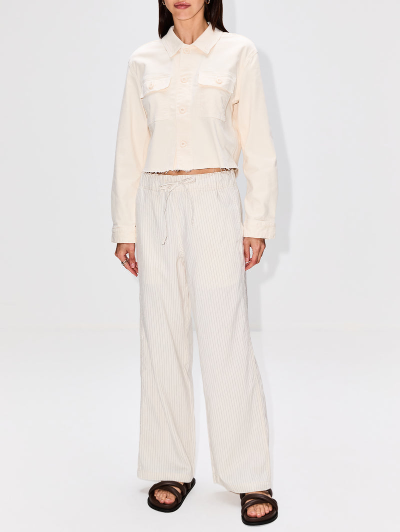 For a modern twist on a utility jacket, this cropped design features a sharp collar, front patch pockets, and a raw hem that nips in at the waist. Crafted from a blend of cotton and lyocell, this jacket offers unparalleled comfort for all seasons.