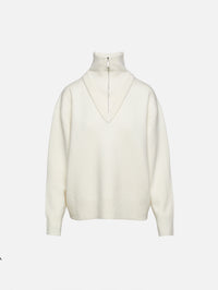 Rosetta Getty's Double Layer Pullover features a plush mercerized wool and cashmere blend, creating a subtle sheen and modern look along with the silvertone zip placket.