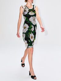 A draped neckline shows off this dress's soft, silky design accentuated by a bold floral print and classic midi silhouette.
