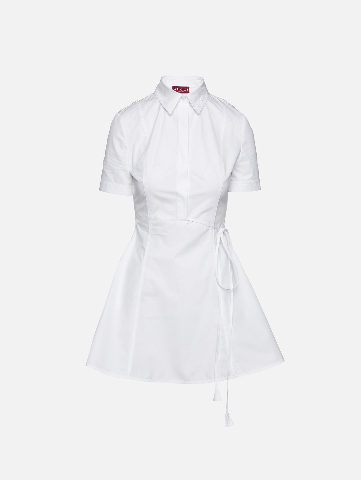 This poplin Gucci design is summer's perfect shirtdress with its tailored neckline and flared skirt cut in a wearable mini length.