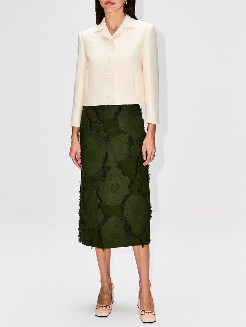 This short jacket is elevated with a wool-silk crêpe jacquard and signature GG motif while remaining understated and versatile.