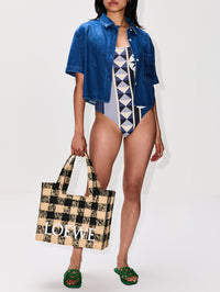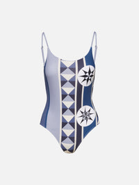 Featuring the exclusive Paula's Ibiza compass print, this statement-making swimsuit will be a favorite for your swim styling with its Anagram details and technical jersey fabric.