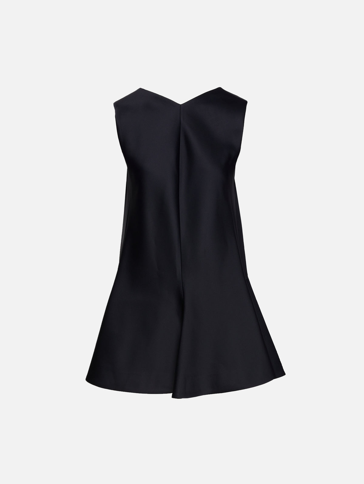 Crafted in structured yet light organza, this mini dress offers a modern, minimal take on the A-line silhouette with a v-neckline, pleats and sharp sleeveless fit.