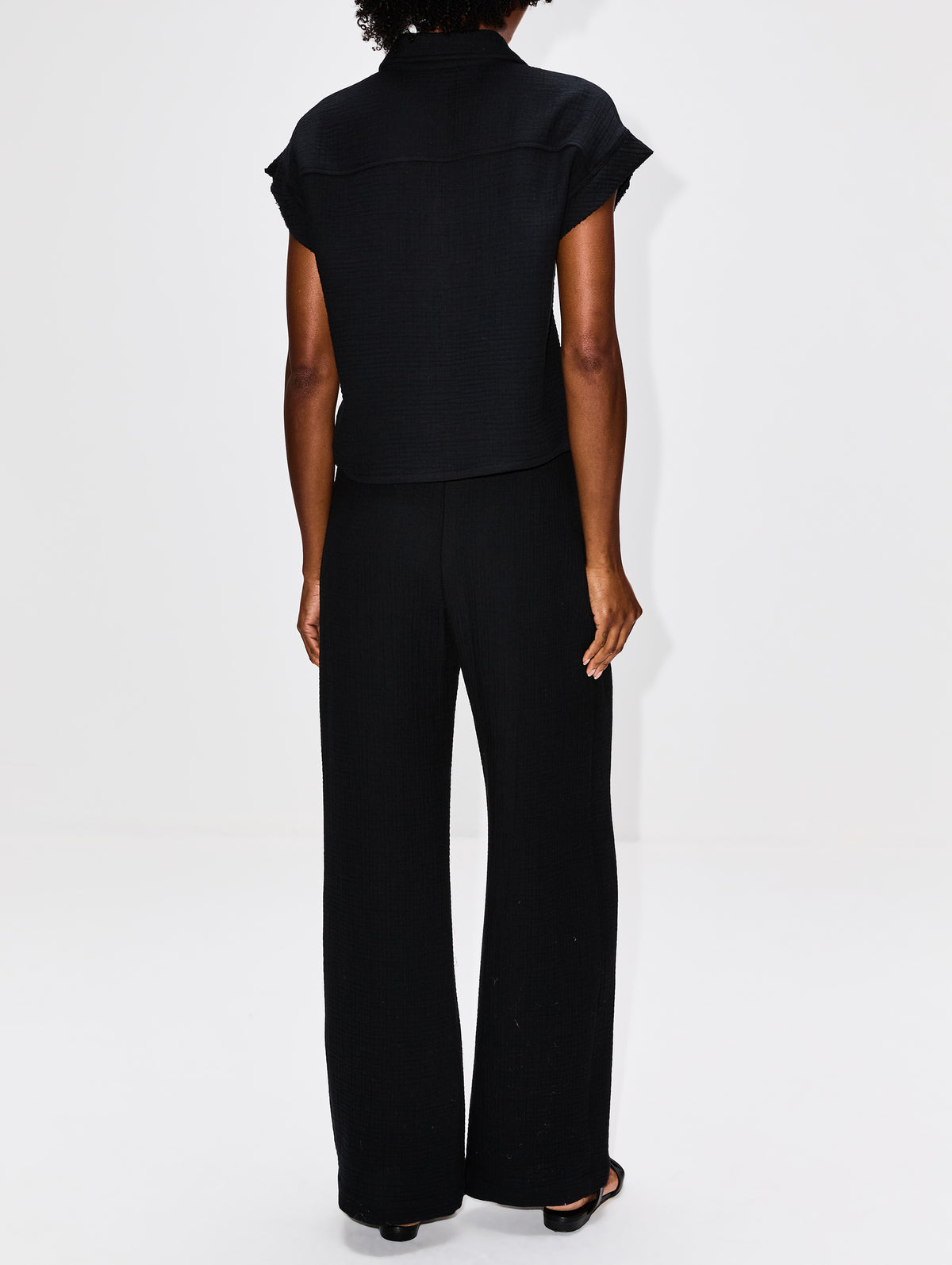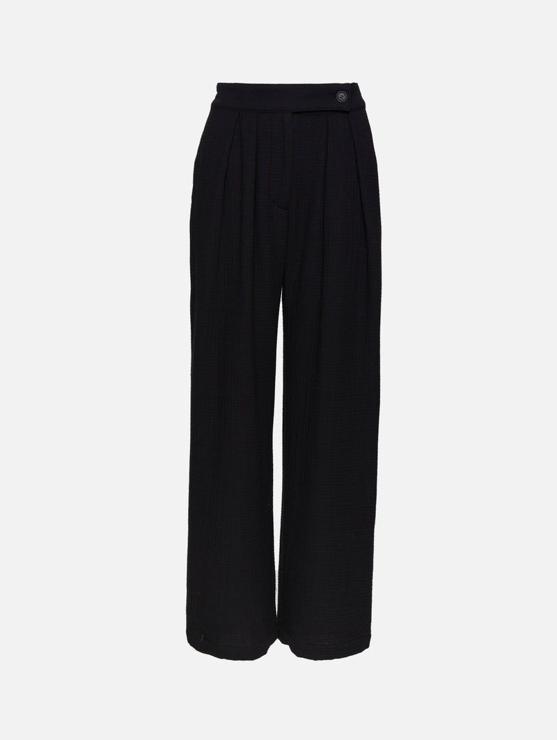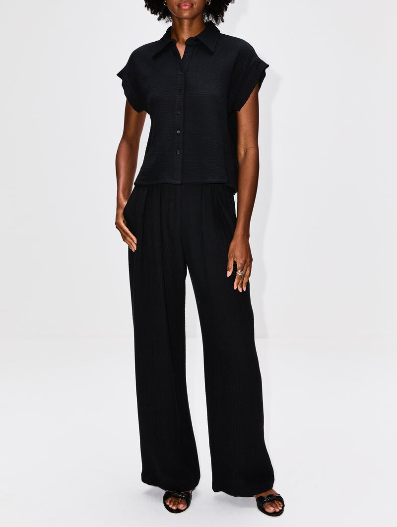 Crafted in a gauzy cotton blend, the Ryan is a casual take on the wide leg trouser. Featuring flattering pleats to compliment the floaty, looser fit, pair with the Caleb Gauze Top to achieve the designer's weightless, chic look.