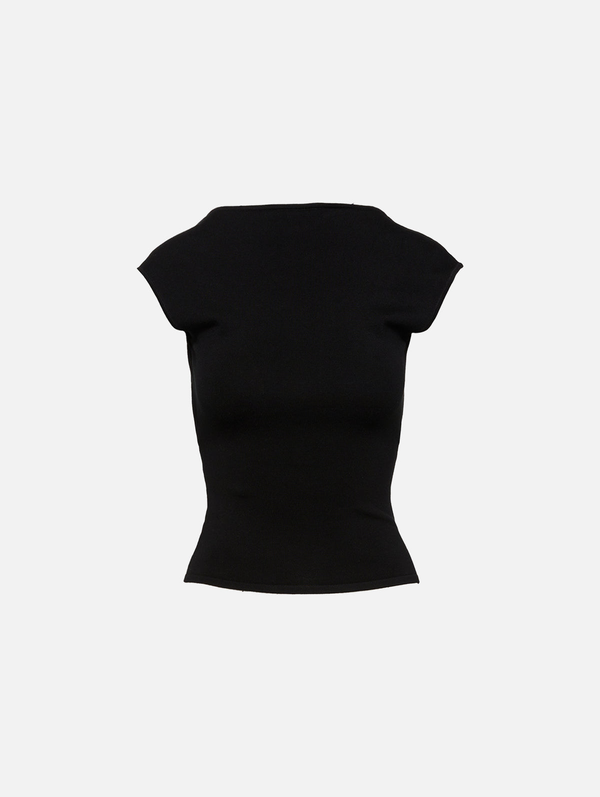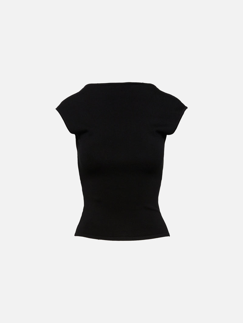 The Sculpted Knit Top boasts a beautifully flattering bateau neckline and delicate cap sleeves, while the alluring open back creates its signature ballet-inspired fit.