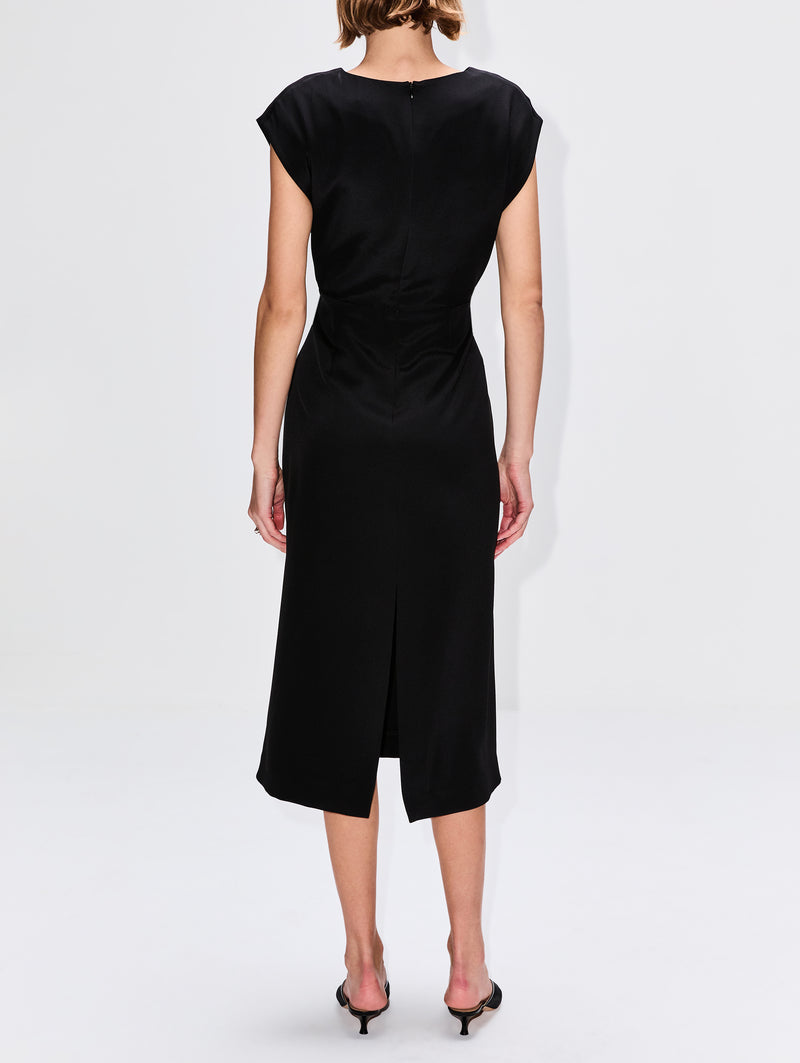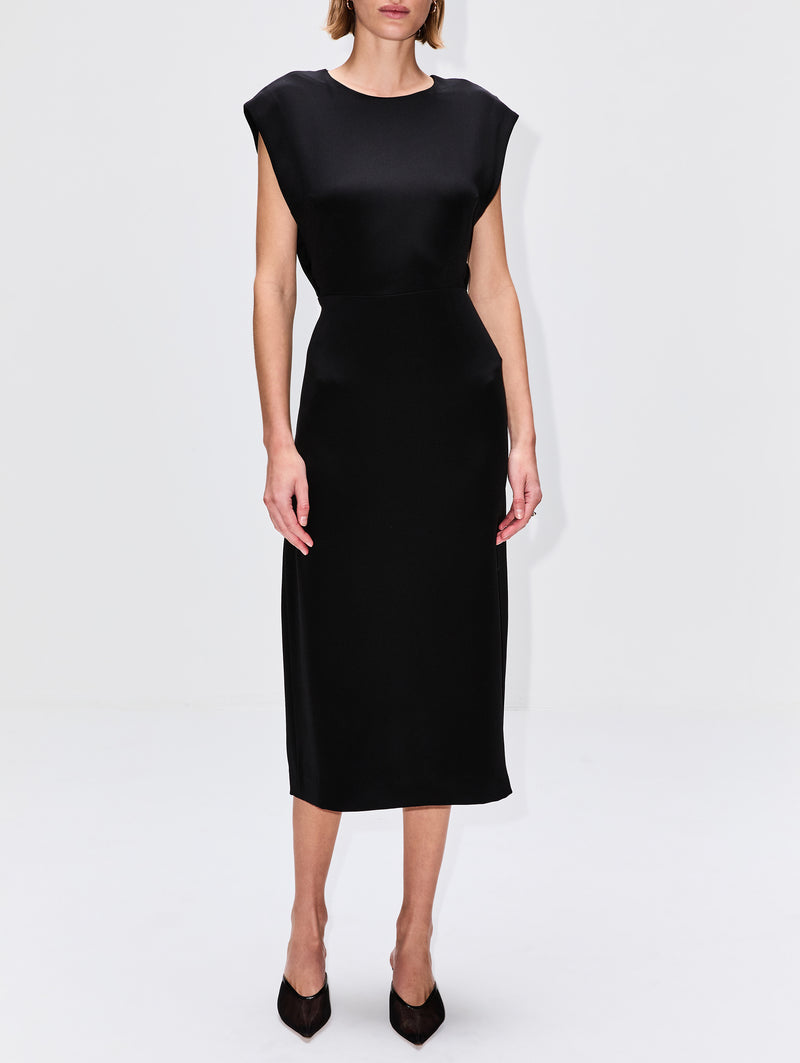 A rich silk and wool blend holds the structure of Partow's Tulip Sleeve Dress— flawless tailored to a wearable silhouette with modern detail that will make this a favorite for weekday styling.