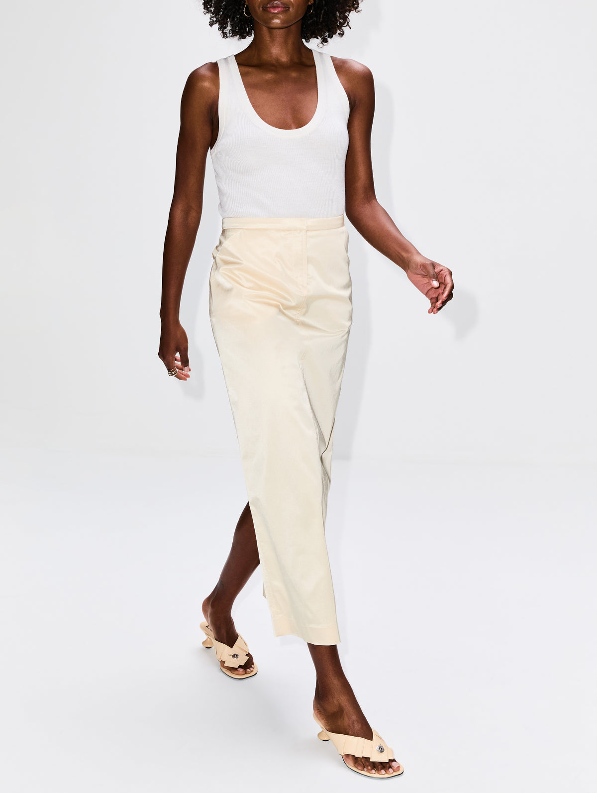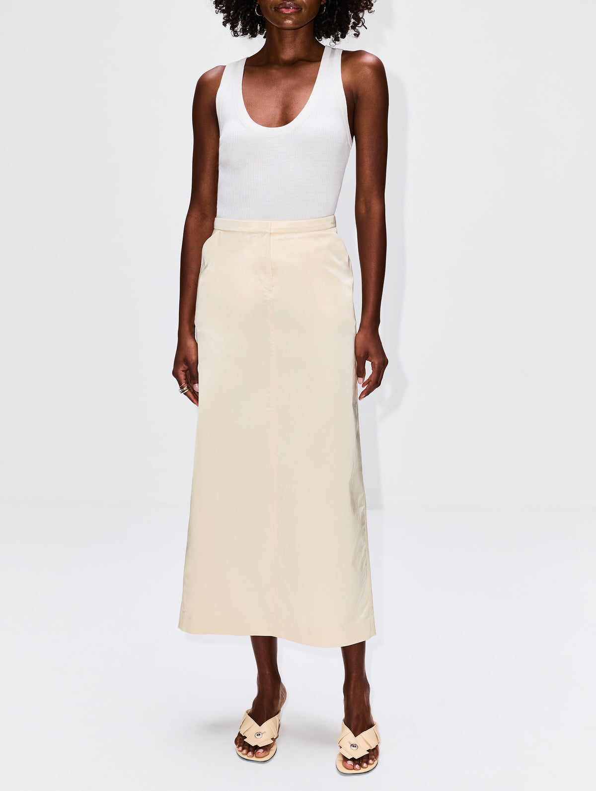 The Straight Skirt by Toteme is the perfect blend of style and comfort. With its elongated straight silhouette, it’s a wardrobe essential. Inspired by the classic design of trousers, it features convenient belt loops, stylish slanted pockets, finished with a zipper fly.